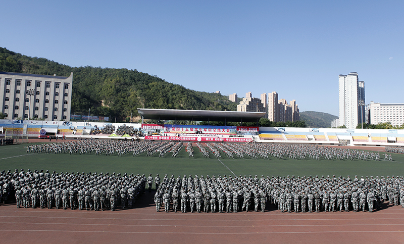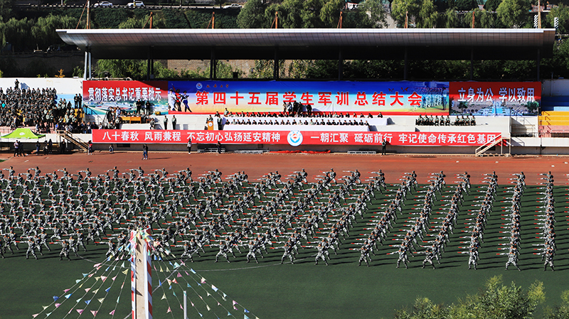 本网讯 9月29日上午,米兰第45届学生军训汇报表演暨总结大会在校体育场隆重举行。校领导薛义忠、田伏虎、王顺、苏醒仁、武忠远、王刚、范育琳,中国人民解放军陆军边海防学院任纪象大校、刘法语上校、杜空军上校、胡科峰中校、彭迪中校,学校有关职能部门负责人,各学院书记、副书记,军训旅领导、教官及2018级3848名学生参加了大会。大会由军训旅党支部书记、校学工部、武装部部长高峰主持。