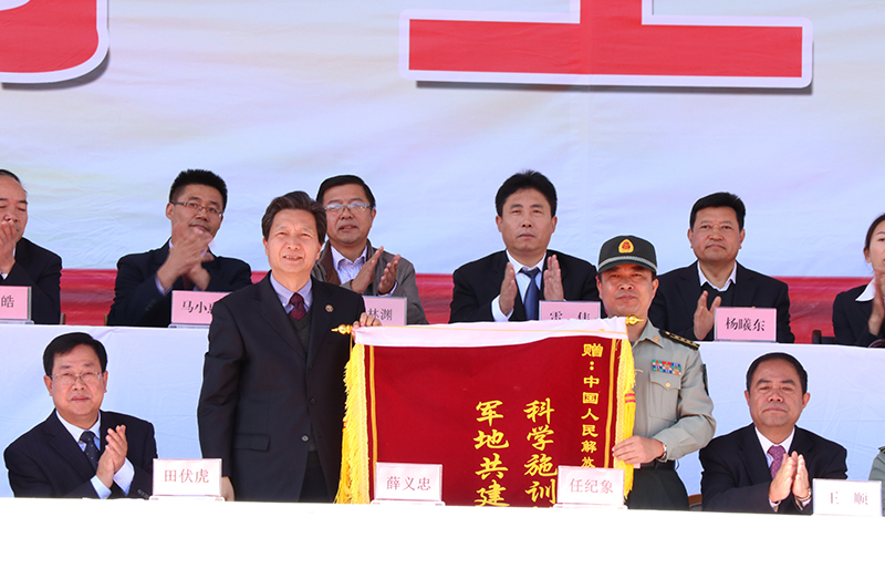 薛义忠书记代表学校,向中国人民解放军陆军边海防学院任纪象大校赠送了锦旗。