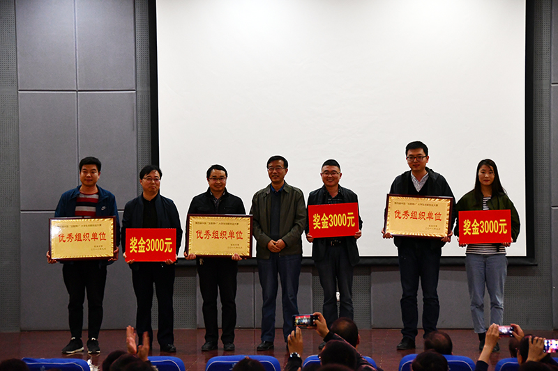 会上,国家级铜奖、省级金奖项目《山丹丹开花红艳艳》,省级银奖项目《游•记—可以收藏的记忆》《延安山地苹果智能防冰雹装置》《“白求恩”心肺复苏医疗小分队》依次进行了展示。教务处副处长薛皓宣读了表彰文件,武忠远副校长为获得国家级铜奖、省级金奖的项目团队,杨延宁、齐向英、张丽媛等3名优秀指导教师,物理与电子信息学院、生命科学学院、建筑工程学院等3个优秀组织单位颁奖,有关部门负责人为省级银奖、铜奖及校级获奖项目团队颁奖。随后,优秀组织单位代表陈国梁、优秀指导教师代表杨延宁、获奖学生代表王珺华先后作了经验交流。