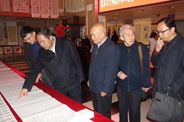 随后,王顺副书记宣布书画展开展。开展仪式结束以后,与会人员观看了书画作品。老年书画社成员为大学生义写了大批书法作品。