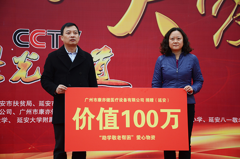 活动现场,康亦健携手中华慈善总会、延安市慈善协会等相关领导启动了“助学敬老帮困”捐赠仪式,康亦健集团向延安“助学敬老帮困”捐赠“价值100万”学习生活物资及康复理疗产品,与会领导向康亦健集团颁发了荣誉证书及牌匾。延安慈善协会向星光大道爱心行动宣传大使袁忠山老师颁发了“延安慈善公益专员”聘书,米兰附小校长孙亚莉代表延安市受捐赠的三所小学发言。