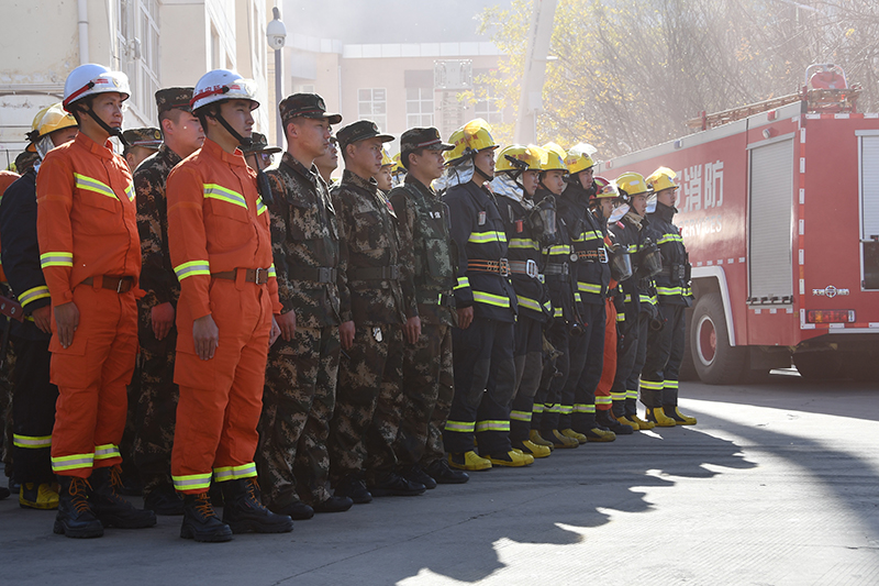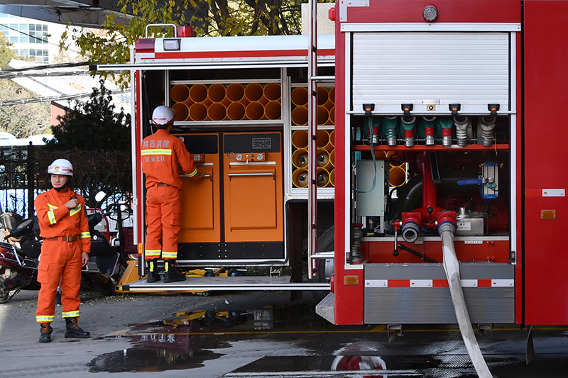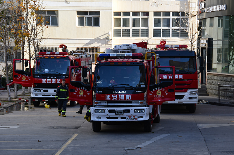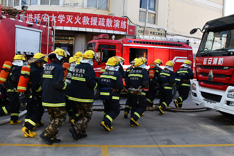 14时30分,一阵急促而响亮的警报铃声响起,演练正式开始。七号学生公寓楼5层两个宿舍发生模拟火灾,浓烟滚滚。听到警报声后,同学们立刻进行疏散,快速按照预定路线从宿舍紧张而有序地逃离危险区域,仅用2分钟即全部疏散至安全地带。延安市消防支队出动各型消防作业车辆10余台,消防官兵使用云梯车将模拟受困学生救出,同时使用四台高压水枪多角度控制了火情。演练结束后,延安市消防支队负责人对演练进行了点评。随后,在米兰523音乐厅,延安市消防支队消防宣传员作了《消防安全知识讲座》。讲座以贴近现实生活为出发点,结合学校实际情况,为广大师生普及了日常防火知识,内容包括灭火器的使用方法、如何正确拨打“119”报警电话、火场逃生自救技巧,以及在校园和家庭应注意的消防安全事项等,并希望广大师生平时加强消防安全知识的学习,提高自防自救能力,营造校园良好的消防安全环境。