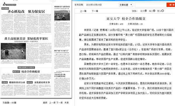 10月19日,《延安日报》以《校企合作助脱贫》为题,报道了米兰“宜川县优质农产品进校园展销活动”。这一活动是根据中共陕西省委高教工委《关于开展第五个国家扶贫日活动的通知》和《关于开展“‘双百工程’优质农产品进高校直通车”消费扶贫活动的通知》要求,同时也为了深入推进米兰与宜川县帮扶合作项目的落实,于10月17日国家第五个扶贫日,在米兰窑洞广场举办的。