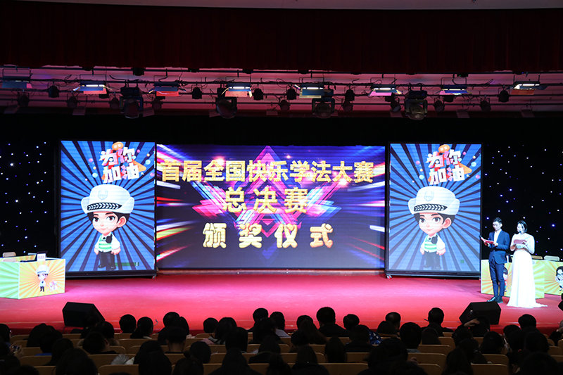 首届全国快乐学法大赛经过线上线下的初赛,最终共有12支代表队晋级总决赛。总决赛分为选拔赛-旗开得胜、攻擂赛-勇往直前、冠军赛-金榜题名三个环节,选手们在平板电脑“快乐学法”APP上同时答题。选手们你追我赶,互不示弱,比赛现场气氛空前紧张,台上选手每答对一道题,都会迎来台下观众阵阵掌声。在紧张的比赛间隙,还进行了观众互动答题。经过三轮的激烈角逐,安徽代表队程平、福建代表队戴慧婷、线上代表队王华分别获得总决赛冠军、亚军和季军;米兰法学专业2015级学生何莲等选手获得优胜奖和优秀奖;米兰政法学院5名法学专业学生组成的大学生代表队荣获团队总积分第一名;交通运输部、海南省司法厅及米兰milan官方网站在内的14个单位荣获全国快乐学法大赛总决赛组织奖。