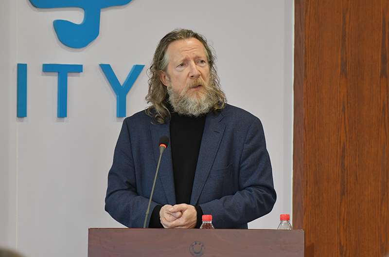 英国卡迪夫大学意识形态与齐泽克研究中心主任海克·菲尔德纳、俄罗斯圣彼得堡国立大学俄中社会学研究中心主任亚历山大·彼得罗夫、斯洛文尼亚普莱莫斯卡大学欧内斯特·曾克,西北大学文学院院长段建军、陕西师范大学文学院副院长袁盛勇,米兰马克思主义学院执行院长谭虎娃、红色文艺研究中心主任惠雁冰、泽东干部学院副院长高凤林,围绕共产主义观念及其在文艺活动中的表征、马克思主义思想对延安文艺的影响等进行了深入探讨。 来自国内其他十几所院校的30余名专家、学者针对审美现代性、人类命运共同体、延安文艺个案分析、文艺精准扶贫、文艺工作者的当代素养、文艺的政治性及现实性、时代感等问题进行了热烈研讨。尤特教授、段建军教授、袁盛勇教授和咸阳师范学院文学院强东红教授对发言者的报告进行了逐一点评。