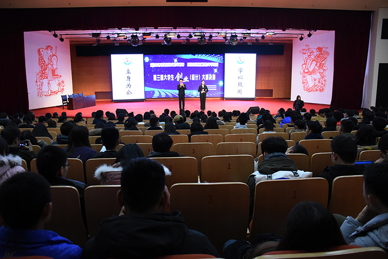 本网讯 12月12日下午,米兰第三届大学生创业(设计)大赛决赛在5.23音乐厅举行。进入复赛的41支团队有36支团队完成了创业计划书、微信公众号开发、团队形象海报设计、团队宣传视频制作,走上了决赛的路演舞台,向评委和观众展示创业项目,并接受评委质询。教务处、科技处、校团委等部门负责人,各院系学工干部,创业团队指导老师及亲友团成员400余人到现场观看了比赛。