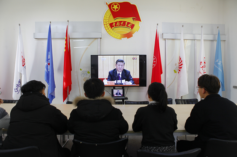 本网讯 12月18日上午10点,中共中央 国务院庆祝改革开放40周年大会在人民大会堂举行,中共中央总书记、国家主席、中央军委主席习近平出席大会并发表重要讲话。校党委理论学习中心组成员、各部门负责人在逸夫楼304会议室集中观看了大会直播。全校各单位按照校党委的统一部署,积极组织师生通过电视、网络、广播等多种形式,在各分会会场收听观看了庆祝改革开放40周年大会直播。