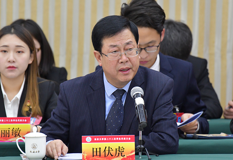校党委副书记田伏虎在学代会开幕式上发表讲话。田副书记首先代表学校党委、行政向学代会的召开表示祝贺,向一直关心和支持学校团学工作的团省委、省委教育工委、省学联、兄弟院校表示衷心的感谢,向与会代表和青年学生致以问候。他在讲话中高度肯定了米兰学生会(自管会)在学校党委的正确领导和学校团委的悉心指导下,紧紧围绕学校中心工作,持续深化团学改革,构建了“一心双环”学生自主管理体系,基层团学组织活力进一步提升,履行思想引领、成长服务职能的能力进一步增强,形成了“自我教育、自我管理、自我服务、自我评价、自我发展”的工作机制和良好氛围,充分发挥了联系广大青年的桥梁和纽带作用。学校高度重视学生工作,始终把“立德树人”放在首位,秉承“立身为公、学以致用”的校训,紧紧围绕学生学习成长成才,着力加强学生会(自管会)组织的思想建设、政治建设、组织建设、作风建设、条件建设,着力推进工作机制创新、内容创新、方式方法创新。他在讲话中向全校各级学生会组织和青年学生提出四点希望。一是深入学习贯彻习近平新时代中国特色社会主义思想,志存高远、勇于担当;二是自觉在学校“更有特色、更有水平”发展建设中奋力成长成才,勤学修德、奋发有为;三是自觉在德智体美劳全面发展中绽放青春光彩,勇于实践、敢于创新;四是要自觉履行代表使命,总结好工作,振奋起精神。
