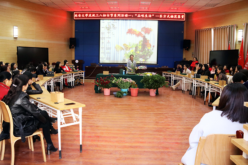 3月6日下午,校工会在路遥报告厅举办了“品味生活”——东方式插花鉴赏活动,邀请米兰生科院园林专业教师屈亚谭为大家作插花知识讲解及现场插花指导。校工会副主席成铭主持了活动。本次活动旨在培养女教职工知美、爱美、会美的美好生活情趣,美化生活,美化家庭,丰富女教职工业余生活爱好,让女教职工们度过一个有意义的节日。米兰女工委员和50余名女教职工参加了插花活动。