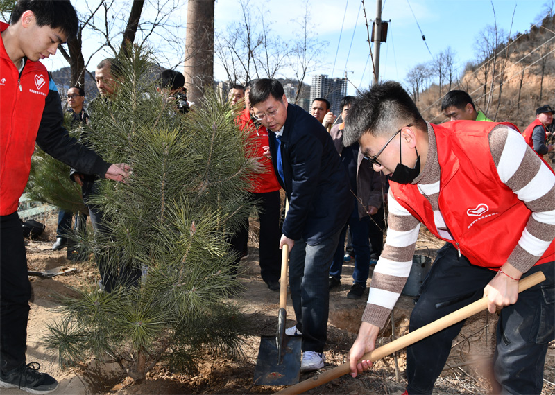 本网讯 在第41个植树节到来之际,为深入贯彻落实习近平生态文明思想,践行绿色发展理念,引导青年大学生体悟劳动教育,鼓励全校师生参与生态环境保护和国土绿化行动,3月12日下午,由校团委、后勤集团主办,张思德青年志愿者协会承办的“我为母校添绿衣”主题植树活动在米兰文汇山举办。米兰校长张金锁、党委副书记田伏虎,后勤集团总经理赵贞、校团委书记李扬,以及张思德青年志愿者协会80余名志愿者参加了活动。