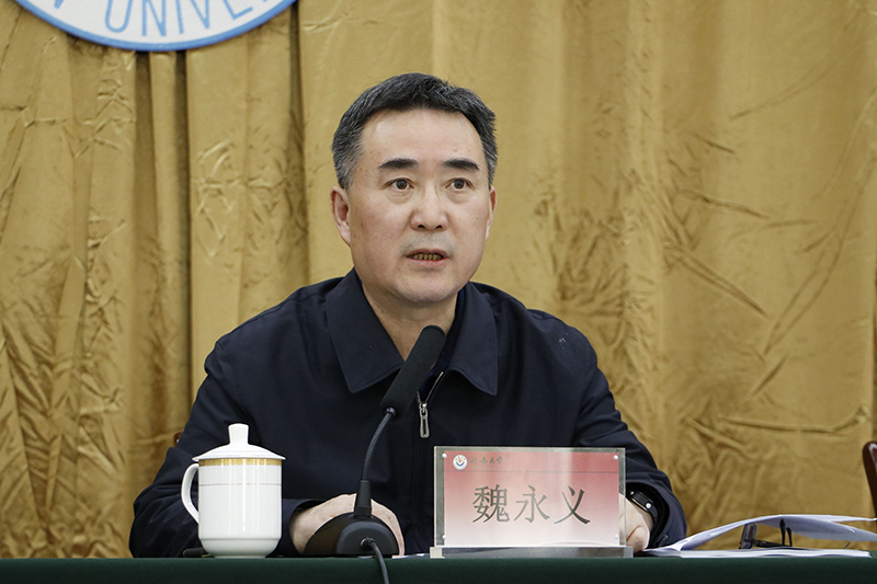 省属高校第一考核研判工作组组长、省委组织部副巡视员魏永义强调了年度考核的目的和意义,并对考核研判工作的内容和方法步骤作了说明。他指出,要提高政治站位、强化责任担当,深化对考核工作的认识;要发扬民主、全面客观,认真总结工作成绩,自觉接受师生监督和民主评议;要坚持原则,郑重负责,使考核研判工作更好地体现民意、反映民声,为加强学校领导班子建设提供真实可靠的依据;要狠抓落实、促进工作,充分发挥目标责任考核研判工作的作用,把省委、省政府的重大部署、重要决策、重点工作落细落小落实,为学校及陕西高等教育发展做出贡献。