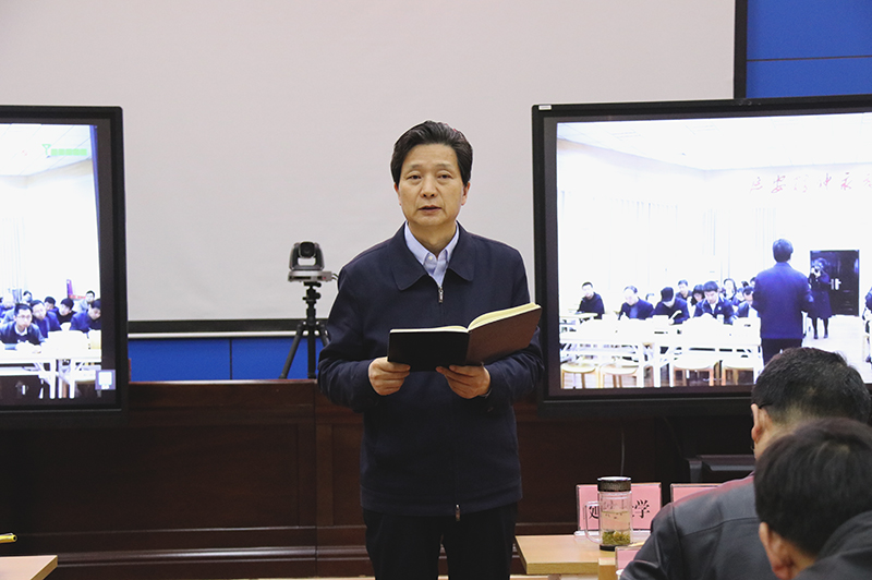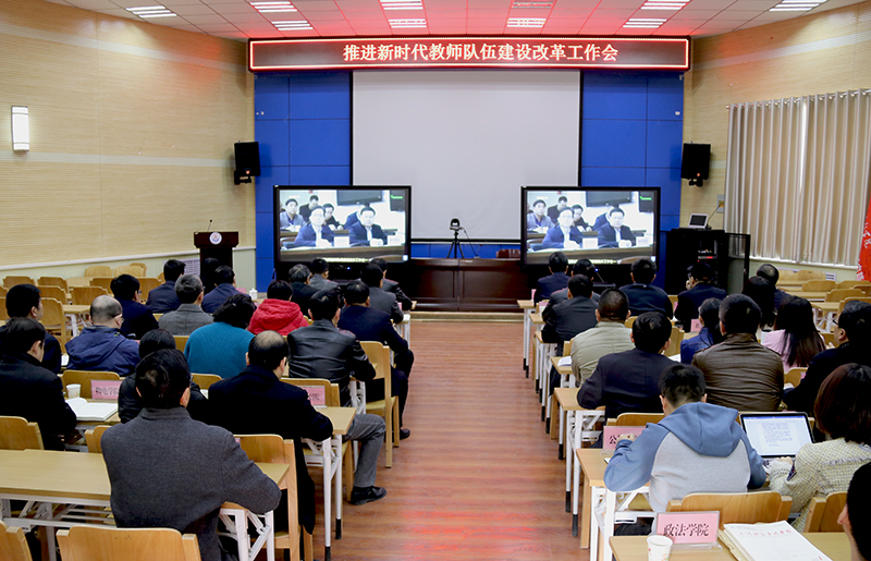 本网讯 3月28日,陕西省委教育工委召开全省推进新时代教师队伍建设改革工作视频会议。省委教育工委书记董小龙主持会议并讲话。省委教育工委副书记、省教育厅厅长王建利,省人力资源和社会保障厅副厅长张虎成讲话。米兰设分会场,校党委书记薛义忠,相关职能部门、院系负责人及教师代表共同收看了会议。