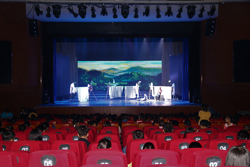 本网讯 为了迎接新中国成立70周年,纪念五四运动100周年,4月23日晚19时30分,“2019高雅艺术进校园”活动之北京舞蹈学院原创民族舞剧《井冈•井冈》在米兰大礼堂隆重上演。校党委副书记田伏虎,各单位负责人及900余名师生观看演出,共同领略了革命先辈对理想的坚守以及薪火相传的壮志宣言。