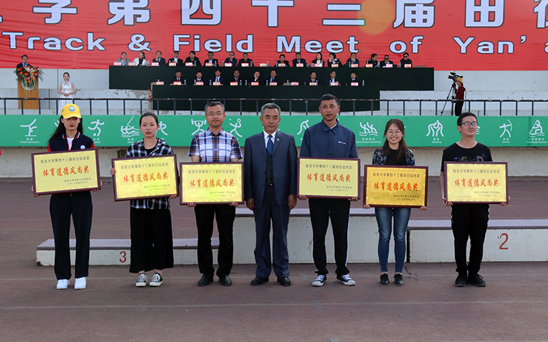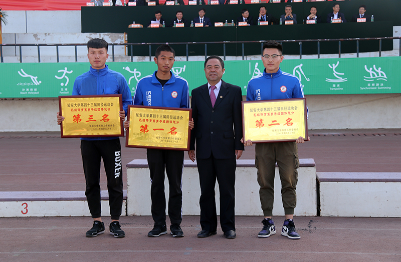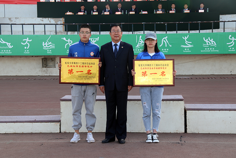 闭幕式上,张金锁校长为获得甲组团体总分第一至第六名的代表队颁奖,党委副书记田伏虎为乙组女子团体总分第一名、乙组社体系团体总分第一名颁奖,党委副书记王顺为获得乙组男子组团体第一至第三名的代表队颁奖,纪委书记苏醒仁为获得体育道德风尚奖的单位颁奖。