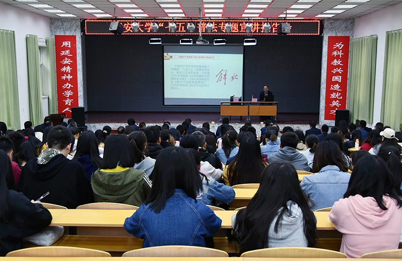 本网讯 5月8日下午,光明网思想理论专家库专家、陕西省委普法办“法润三秦大讲堂”宣讲专家、西北政法大学副教授马成应邀在米兰外国语学院礼堂作了题为《尊崇宪法 学习宪法 增强宪法意识 弘扬宪法精神》的专题报告,参加报告会的有学校各职能部门工作人员、各院系副书记、学生代表等200余人。报告会由校党委委员、党委宣传部部长杜红荣主持。