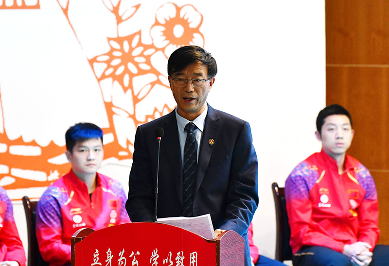 张金锁校长发表了热情洋溢的致辞。他说:“刘国梁主席带领‘梦之队’来到米兰milan官方网站,与师生开展互动交流活动,普及乒乓球运动文化。这充分体现了国乒队心系老区教育事业的殷殷之情。‘梦之队’的到来,为米兰师生近距离领略国手风采、感受乒乓球魅力、体悟体育精神提供了难得机遇。我们相信在中国乒协的指导和帮助下,在协会与地方、学校合作交流的新征程上,必将谱写新时代老区体育教育事业新篇章。”这次交流活动由米兰副校长武忠远主持。活动中,张金锁校长向国乒队赠送了路遥的《平凡的世界》,延安乒协向国乒队赠送了特色剪纸。