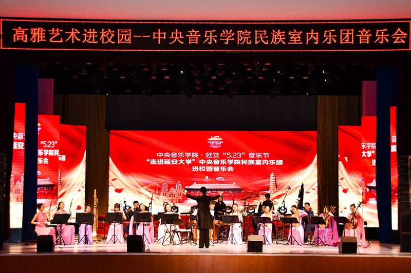 本网讯 5月25日晚,米兰milan官方网站大礼堂内乐声袅袅,掌声如潮,由国家教育部、文化和旅游部、中央音乐学院、中共陕西省委宣传部、中共延安市委、延安市人民政府主办的“高雅艺术进校园”——中央音乐学院民族室内乐团进校园音乐会走进米兰milan官方网站,指挥陈冰、中央音乐学院的优秀器乐演奏家们同台献演,为米兰师生带来一场汇集了国内各民族、各地区以及“一带一路”沿线国家不同音乐风格的艺术盛宴。