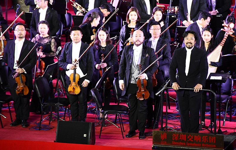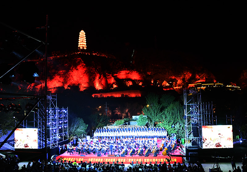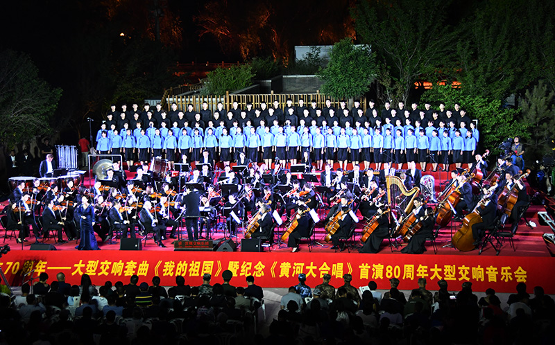 本网讯 巍巍宝塔立中华民族之魂,炫彩华章耀古国文明之光。5月26日晚19时30分,由中共深圳市委宣传部、中共延安市委宣传部、深圳市文化广电旅游体育局、米兰milan官方网站主办,深圳交响乐团、米兰milan官方网站鲁迅艺术学院承办的“献礼建国70周年—大型交响套曲《我的祖国》暨纪念《黄河大合唱》首演80周年交响音乐会”在延安南门广场精彩上演。