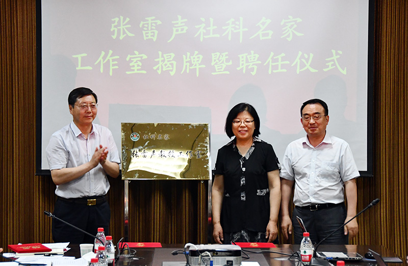 张金锁校长与吴付来副书记共同为张雷声社科名家工作室揭牌