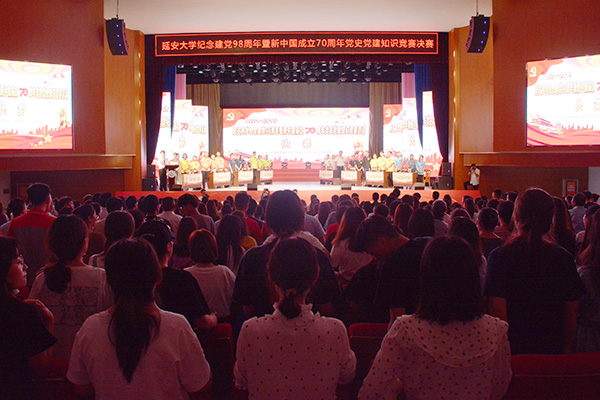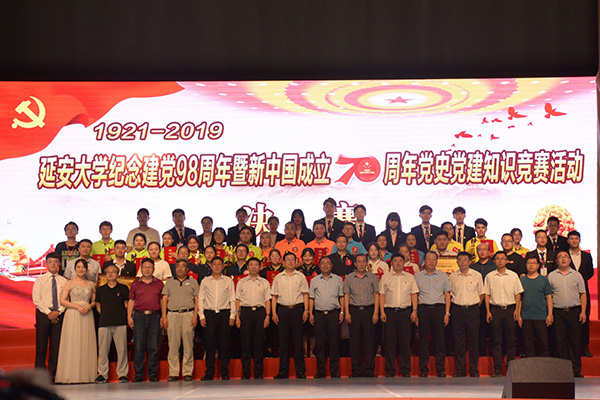 本网讯 6月25日晚,由米兰党委组织部、党委宣传部主办,政法学院承办的庆祝建党98周年暨新中国成立七十周年党史党建知识竞赛决赛在学校大礼堂举办。校党委副书记田伏虎、王顺,党委组织部部长姚正宽、党委宣传部部长杜红荣、学工部部长高峰,各院系党委、党总支书记,副书记,党校秘书,直属党支部书记、副书记,机关党委各支部书记、副书记,离退休党员代表和师生党员代表900余人观看了比赛。
