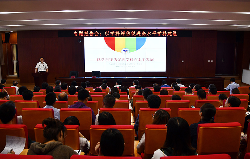 本网讯 6月27日,教育部学位与研究生教育发展中心主任黄宝印应邀在新校区行政楼一楼学术报告厅为米兰师生作了题为《以学科评估促进高水平学科建设》的专题报告,报告会由校长张金锁主持。米兰党委副书记田伏虎、副校长武忠远、杨伟宏,各有关部门负责人、各院系院长(主任)、主管学科与研究生教育副院长、学科带头人、导师组组长、学科组成员、研究生秘书、学科秘书、研究生代表等200余人听取了报告。