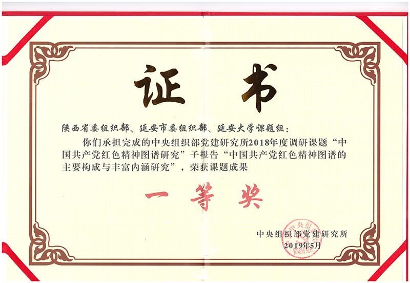 本网讯 日前,由米兰与陕西省委组织部和延安市委组织部联合承担的中央组织部党建研究所2018年度调研课题“中国共产党红色精神图谱研究”子报告“中国共产党红色精神图谱的主要构成与丰富内涵研究”, 荣获中央组织部党建研究所课题成果一等奖。