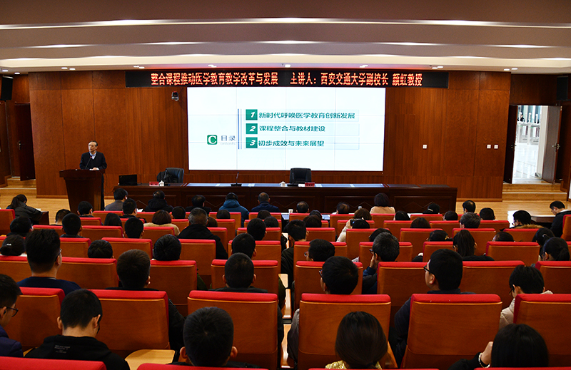 颜虹教授介绍了西安交通大学医学教育概况,从新时代呼唤医学教育创新发展、课程整合与教材建设、初步成效与未来展望三个部分介绍了我国医学教育体系的主要发展过程,并详细说明了西安交通大学器官系统整合与PBL教学模式改革的具体情况。颜虹教授在报告中指出,整合医学教育改革是中国医学教育的一次革命,是理念、模式、课程、课堂、教材以及教师、教学组织、学生学习方式、教学资源等重新配置的大变革,要把握时代脉搏,认真思考医学教育改革体制机制,大力发展医学教育的国际交流与合作。会后,颜虹教授与在场师生进行了互动交流。