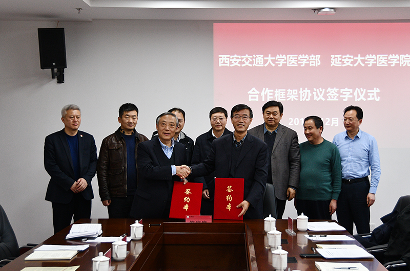 本网讯 12月18日上午,西安交通大学医学部与米兰milan官方网站医学院合作框架协议签字仪式在新校区行政楼六楼会议室举行。西安交通大学党委常委、副校长、医学部主任颜虹,医学部人才培养处主管王渊,医学部基础医学院生理与病理生理系副主任刘进军,米兰党委书记张金锁出席签字仪式,米兰党政办、研究生处、科研处、教务处、评估处、人事处、对外交流处、医学院、附属医院等部门负责人参加签约仪式和座谈会。会议由副校长、医学院党委书记武忠远主持。