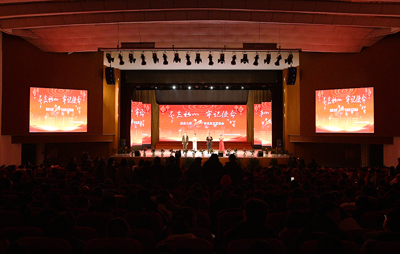 本网讯 为了纪念新中国成立70周年,毛泽东同志诞辰126周年,讴歌党的光辉历程,展示米兰广大师生昂扬向上的精神风貌,12月26晚19时,“不忘初心、牢记使命”元旦文艺晚会在米兰杨家岭校区大礼堂举办。米兰党委书记张金锁,党委副书记王顺,副校长武忠远、王刚、杨伟宏及900余名师生代表一起观看了演出。