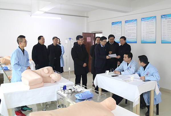 张金锁书记在张群主席等人的陪同下深入教学和临床一线,参观了科教大楼、临床技能培训中心,咸阳医院院史馆、神经内科VIP一病区、骨科一病区、儿科、医疗美容科等临床科室和相关教研室,实地考察了临床技能训练中心。考察期间,张金锁书记看望了米兰医学类实习生和见习生,了解他们在医院学习生活情况,同时到第十届全国大学生医学技能比赛预赛选拔现场,详细询问选拔程序并提出了建设性的意见。