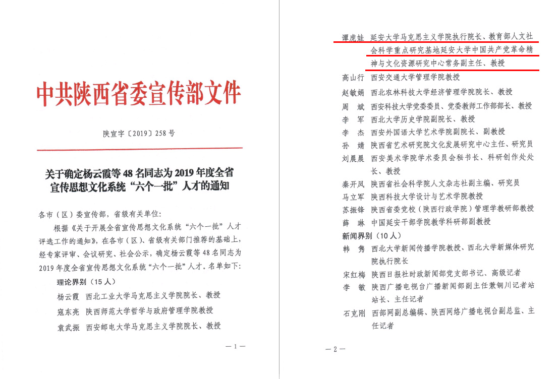 本网讯 陕西省2019年宣传思想文化系统“六个一批”人才评选于日前揭晓,米兰谭虎娃教授入选。