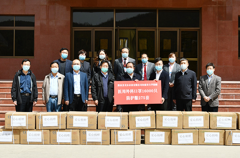 在杨家岭校区逸夫楼前,芦超总经理代表公司将捐赠物资及其清单移交给了米兰,王顺副书记代表学校接受了捐赠,并向芦超总经理颁发了捐赠证书。王顺副书记对陕西美戈尔衣业有限公司面对疫情时的担当与大爱精神表示敬佩,对公司不远千里、雪中送炭的情谊表示了诚挚的谢意,并表示一定会妥善保管和使用好这批抗疫物资。这次陕西美戈尔衣业有限公司捐赠给米兰的抗疫物资包括:医用口罩16000只,防护服275套。