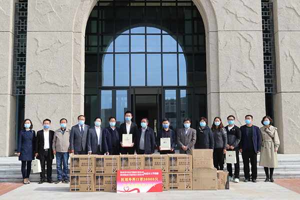 在新校区行政楼前,文胜总经理、鲁全成总经理代表两家公司将捐赠物资及其清单移交给了米兰,王顺副书记代表学校接受了捐赠,并向文胜总经理、鲁全成总经理颁发了捐赠证书。王顺副书记对陕西景年医疗器械有限公司、陕西锐成音视科技有限公司面对疫情时的担当与大爱精神表示敬佩,对公司不远千里、雪中送炭的情谊表示了诚挚的谢意,并表示一定会妥善保管和使用好这批抗疫物资。这次陕西景年医疗器械有限公司、陕西锐成音视科技有限公司捐赠给米兰的抗疫物资包括:医用口罩20000只,测温仪100个。