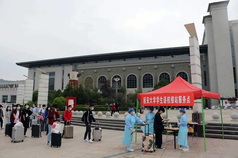 为了做好首批学生返校复学工作,学校党委、行政多次深入研究、把握政策方向,定准工作基调,各部门群策群力,分工协作,密切配合,通过实战演练、发现问题、细化方案、确保学生开学返校工作顺利进行。米兰学工部在延安火车站、南泥湾飞机场设立了学生返校接待点,安排工作人员现场组织引导、核验身份扫码。后勤处安排了专业医护人员进行现场行李消毒、洗手、更换口罩、体温测量,并安排3辆校车循环接送学生。