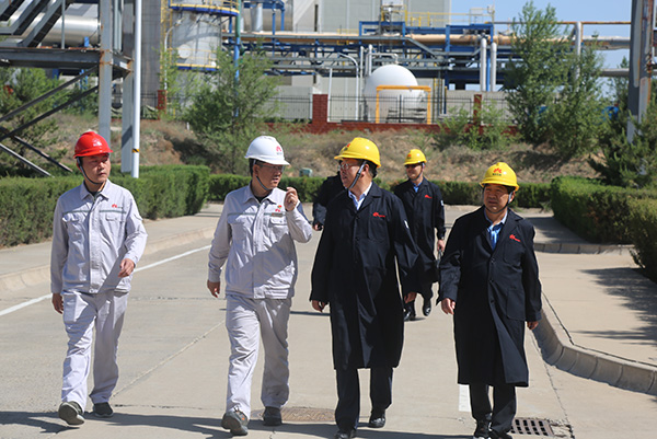 在榆林二院和星元医院,田伏虎副书记一行参观了医院为医学类学生见习、实习提供的报告厅、示教室、电子阅览室、食堂、宿舍等,参观了现代化的手术室、ICU等。在北元化工集团和榆林凯越煤化公司,调研小组参观了厂区、总控制中心、现代化生产车间和产品样品室。榆林二院院长贺波、星元医院党委书记王建睿、凯越煤化公司执行董事兼总经理冯学文、北元化工集团总经理刘延财与田伏虎副书记共同签署了共建就业基地合作协议,并为就业基地揭了牌。