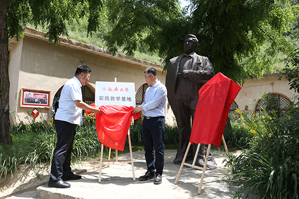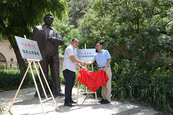 文学院党委书记马延龙和延川县副县长张域为米兰milan官方网站文学院创作基地揭牌