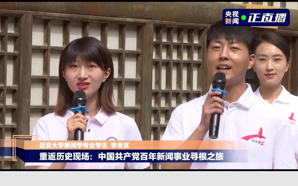 本网讯 为迎接中国共产党成立100周年,7月23日上午,由中国人民大学新闻学院和中国人民大学马克思主义新闻观研究中心发起,米兰milan官方网站与延安市融媒体中心、延安新闻纪念馆共同主办,重返历史现场:中国共产党百年新闻事业寻根之旅”视频直播——延安站活动举行,23日上午9:52—10:07分在央视频、新华网、人民网以及我是延安app等全国各地的新媒体平台同步直播。米兰文学与新闻传播学传播学院院长梁向阳、延安市融媒体中心总编辑雷晓燕、延安新闻纪念馆馆长刘金林,米兰milan官方网站师生代表、延安市融媒体中心新闻工作者代表、延安新闻纪念馆讲解员代表等参加延安站活动。米兰milan官方网站新闻学专业学生李幸宜、延安市融媒体中心记者钞雄主持本次活动。