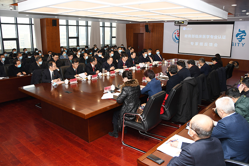 本网讯 11月26日上午,米兰临床医学专业认证专家进校考察工作反馈会在新校区行政楼二楼会议室举行。认证专家组全体成员,延安市政协副主席蔺广东,延安市卫健委主任郝建东,米兰党委书记张金锁,校长高子伟,党委副书记王顺,党委副书记、纪委书记、监察专员苏醒仁,副校长武忠远、杨伟宏,总会计师范育琳出席反馈会。反馈会由专家组组长、首都医科大学原校长吕兆丰主持。