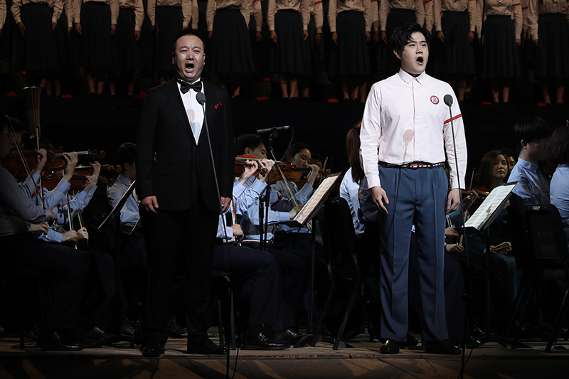 此次上海音乐学院结合新时代特点复排的新时代版《长征组歌》,以诗歌朗诵为序曲,依次表演了《告别》《突破封锁线》《遵义会议放光辉》《四渡赤水出奇兵》等10首经典歌曲,演绎了长征过程中发生的10个战斗、生活场面,汇成了主题鲜明、内容丰富、风格独特的中国经典交响合唱组曲《长征组歌》。据了解,《长征组歌》创演于1965年,作品以大合唱的形式重现了红军长征。上海音乐学院新时代版《长征组歌》保持了作品原有的风貌,又根据新时代的特征进行了调整与创新。本场演出阵容十分强大,群英荟萃,包括著名男中音歌唱家、院长廖昌永教授,著名指挥家张国勇教授、著名唢呐表演艺术家、副院长刘英教授等一批上音艺术家。米兰8名教师参与领唱、朗诵等节目演出。