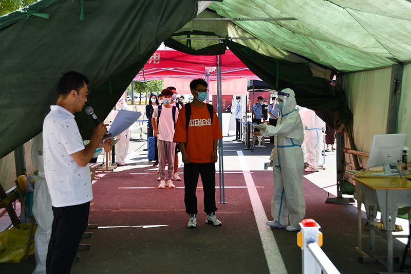 本次演练活动重点检查学生进校通道设置及返校流程安排,模拟学生进校健康查验各环节异常情况处置和学生入住公寓后发热处置。学生入校健康查验三个环节分别是查验“电子返校凭证”,查验健康绿码并进行体温测量与行李消杀,查验“通信大数据行程卡”及核酸检测阴性报告。通过以上环节的查验,掌握进校学生身体的健康状态,确保校园疫情防控安全。