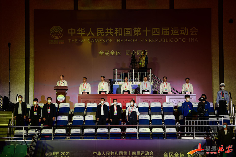 仪式上,薛占海宣布中华人民共和国第十四届运动会“陕煤集团杯”乒乓球比赛开赛。