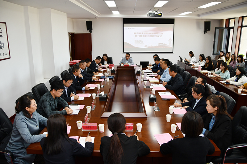 本网讯 为进一步加强我院学科思政实践教学工作,9月29日下午,在行政楼六楼会议室举行米兰milan官方网站教育硕士教学实习基地挂牌暨校外导师聘任仪式。米兰副校长兼马克思主义学院院长谭虎娃、研究生院院长王文强、延安市新区高级中学校长王殿斌、延安市新区第一中学校长高忠学、延安市宝塔区第四中学副校长李国鹏、延安市新区第二中学副校长高静、延安市新区第三中学副校长贺军鹏及马克思主义学院师生代表参加聘任仪式。仪式由马克思主义学院副院长刘建华主持。
