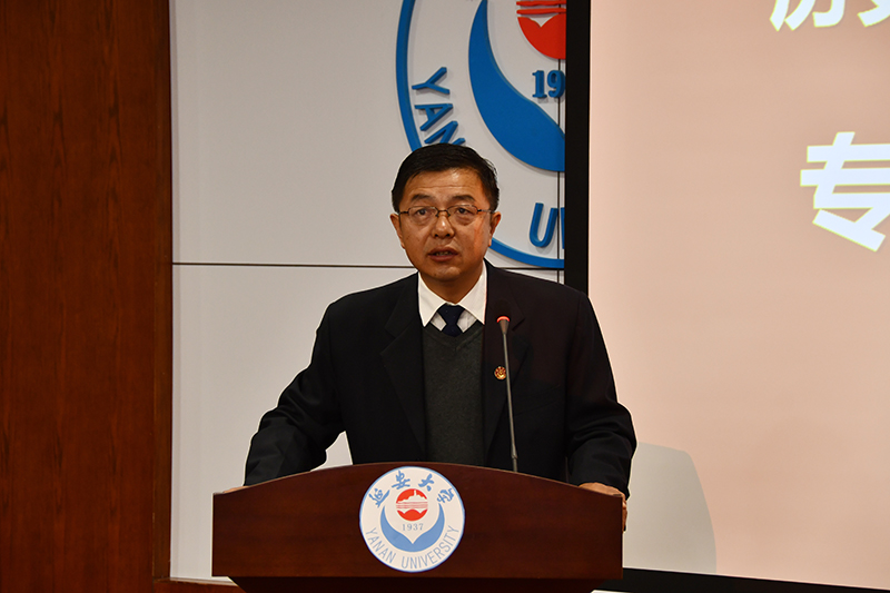 校长高子伟代表学校作表态发言。他指出,一是要高度重视,提高认识。学校将本着对学生负责、对社会负责、对国家负责的态度,强化“学生中心、产出导向、持续改进”的理念,全面梳理、检视历史学专业教育的体制机制,切实把专家组的反馈意见作为学校深化师范教育改革的助推器,不断提升师范教育质量,着力培养具有延安精神特质的中学历史骨干教师,为基础教育事业发展贡献延大力量。二是要聚焦短板,认真整改。学校将认真对标《师范类专业认证标准》和专家组提出的意见,坚持问题导向,形成整改方案,强化整改措施,确保条条整改、件件落实,不断巩固和扩大此次专业认证的成果,建立学校师范教育高质量发展的长效机制,推动师范教育再上新台阶。三是要深化改革,提升质量。学校将把师范类专业认证工作与“十四五”强特色阶段的战略发展规划结合起来,紧紧围绕提高人才培养能力这个核心点,紧扣“特色”和“水平”抓整改,在顶层设计、经费支持、师资队伍、教育资源、条件设施等方面向师范专业倾斜,着力深化教育教学改革,全面提升师范类专业人才培养质量。