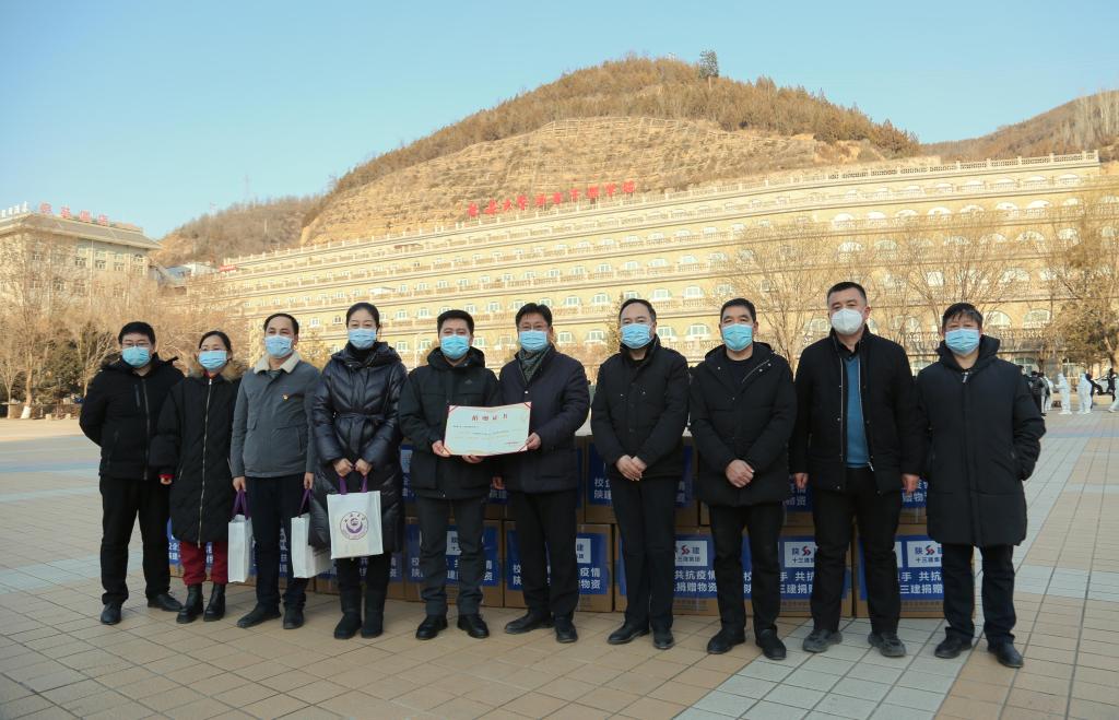 本网讯 12月28日下午,受陕西建工第十三建设集团有限公司党委书记、董事长卜国平的委托,陕西建工第十三建设集团有限公司副总经理杨永宏,纪委书记、工会主席李静,党政办主任张鹏辉等一行代表公司,向米兰捐赠抗疫物资,米兰副校长吕达,后勤处、保卫处、对外交流与合作处等单位负责同志参加了仪式,仪式在杨家岭校区窑洞广场举行,由后勤处处长高东旭主持。
