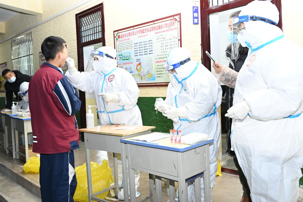 12月18日上午10:30再次接到市卫健委布置临时采集点的任务,我院负责杨家岭社区卫生服务站、兰家坪社区卫生服务站、北关街社区卫生服务站、延大附院全科医学门诊4个固定点,以及鲁艺一号院,能源小区两个小区。护理部再次抽调58人,其中护理人员37人,学生21人。期间每个站点都排起了长队,为不耽误工作时间,核酸采集人员全天白天没有吃一顿饭,一直持续到凌晨四点左右,共采集核酸4153人次。
