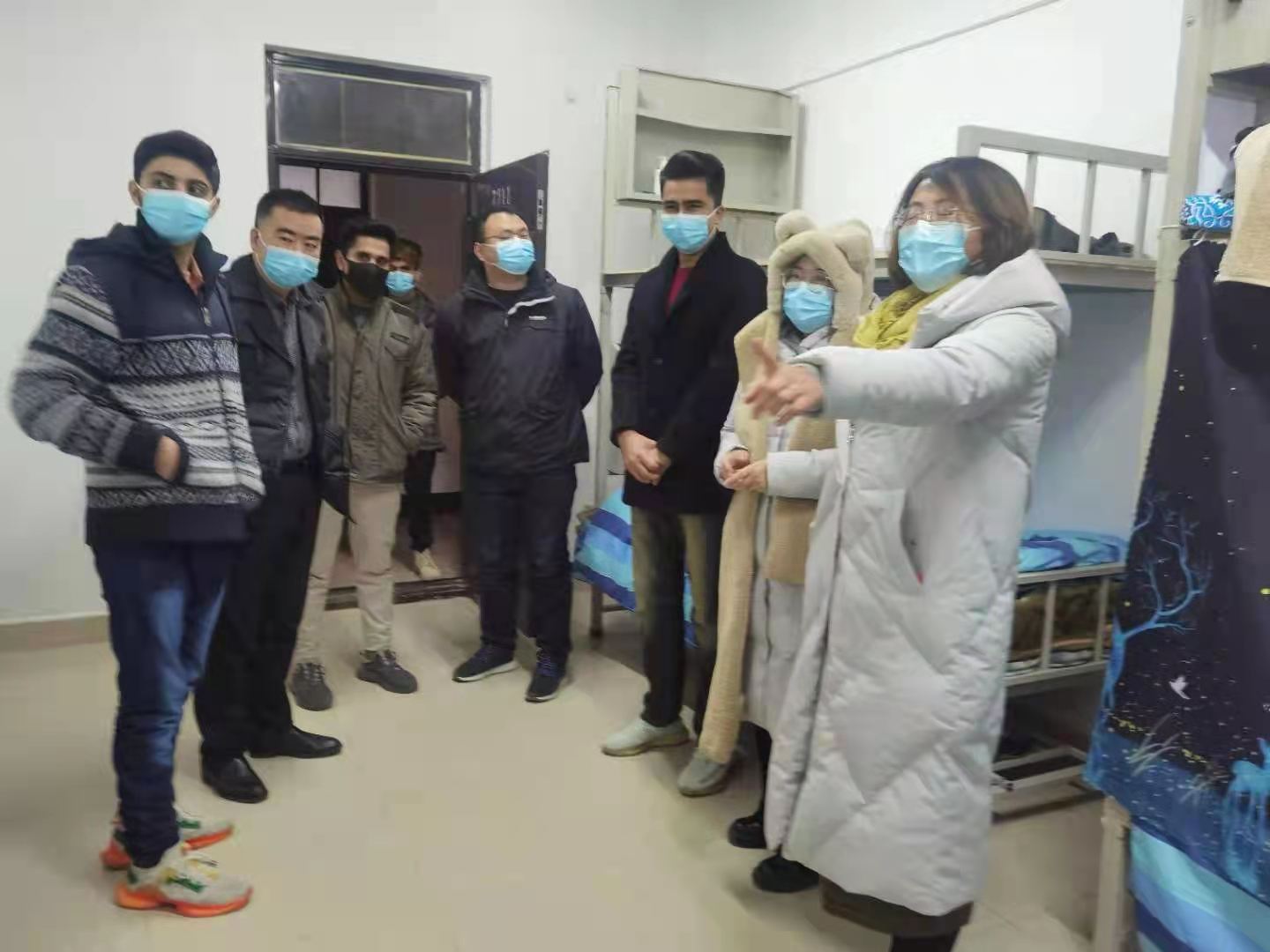 ——抓牢宿舍安全。一是落实留学生公寓出入登记、测量体温和健康打卡制度,严禁任何无关人员或访客进入公寓,严格按照学校要求管理公寓;二是每日对留学生宿舍进行消杀,分发防疫物资,极大限度保证学生安全;三是对留学生公寓采取严格的环境检测和卫生措施,为留校学生提供口罩、免洗手消毒液、消毒湿巾等防疫物资;四是多次检查留学生的宿舍,排查宿舍的用水用电安全及其他安全隐患,询问学生在生活和学习上存在的问题,并积极进行答疑解惑,使学生安心学习,积极生活。