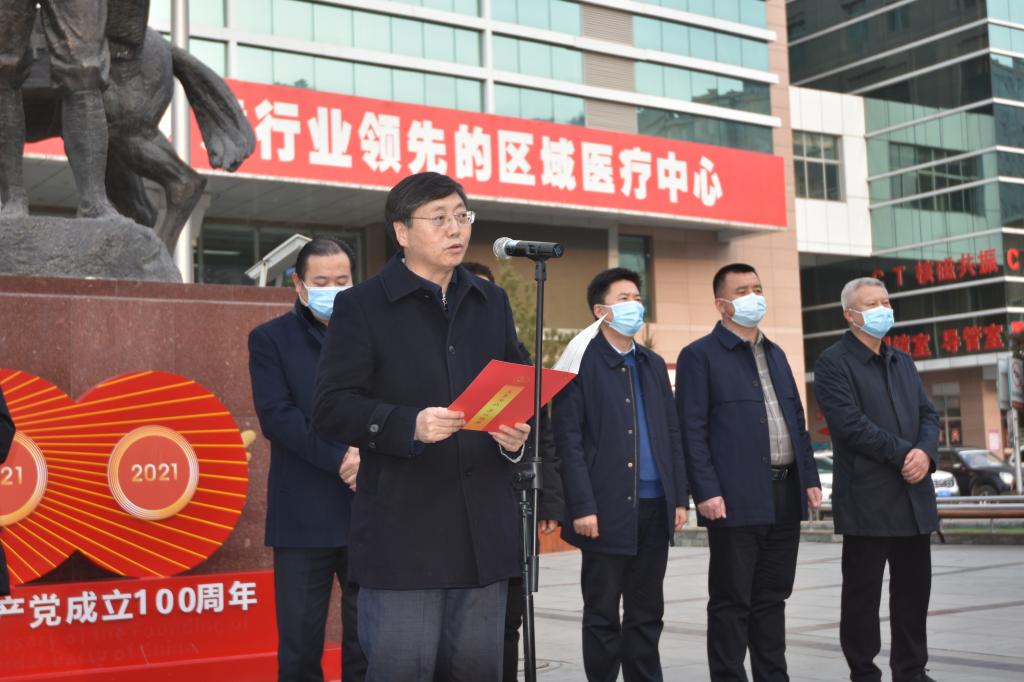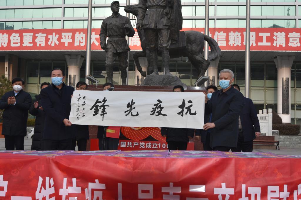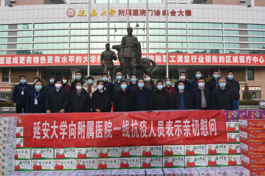 本网讯 1月9日下午,校党委书记张金锁,校长高子伟,副校长武忠远、杨伟宏、吕达,以及党政办、后勤处、医学院等相关单位负责同志,前往附属医院慰问一线抗疫医务人员并送去慰问物资,送上了学校的关怀与温暖。慰问活动在附属医院白求恩雕像前举行,慰问活动由附属医院院长白茫茫主持,附属医院一线抗疫医务人员代表参加了慰问活动。