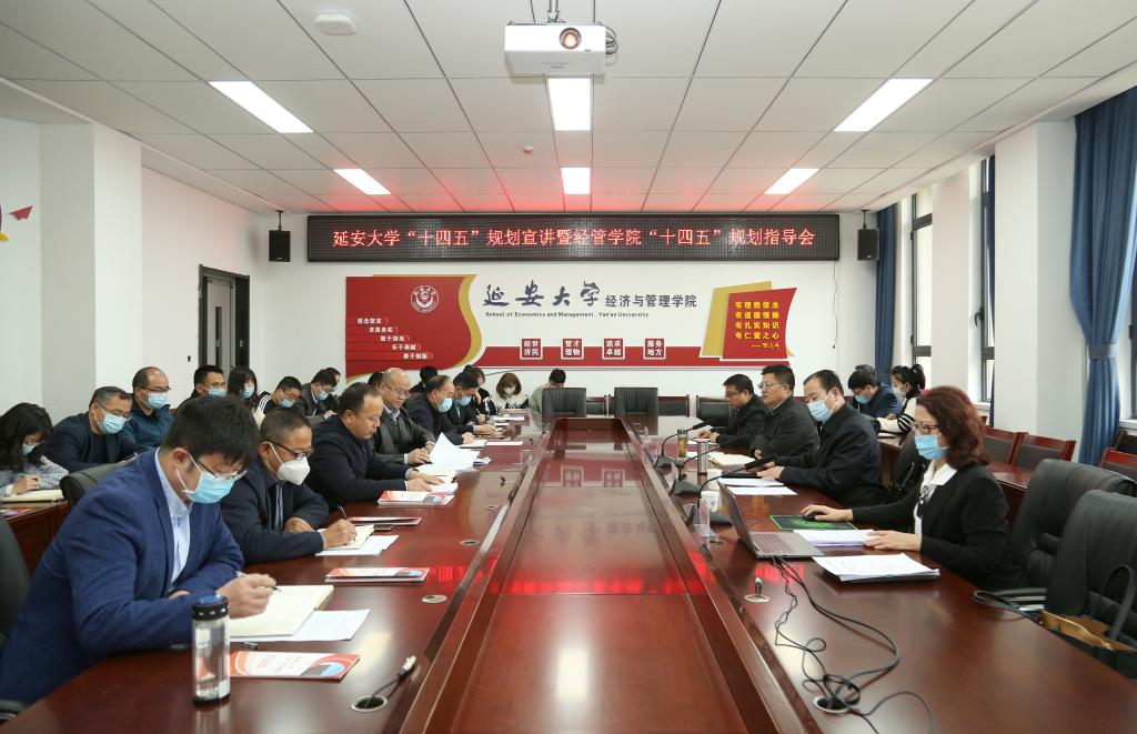 发展规划处处长张雪梅对学校“十四五”规划编制过程进行了简要说明,重点从发展基础与发展环境、指导思想与遵循原则、战略定位与主要目标等方面详细解读了学校“十四五”规划纲要。学校将以习近平新时代中国特色社会主义思想为指导,以高质量发展为主题,坚持用延安精神办学育人,遵循6项原则,对标10个方面主要目标和七大类46项主要指标,通过实施7项重点工程、4项提质计划、6项重点改革等,推动“十四五”规划落地落实。经管学院院长王进对学院“十四五”规划编制情况和主要内容进行了汇报,学院党委书记付旭在发言中表示学院将不负重托,聚焦“十四五”规划奋力前进,争当学校发展的“排头兵”。
