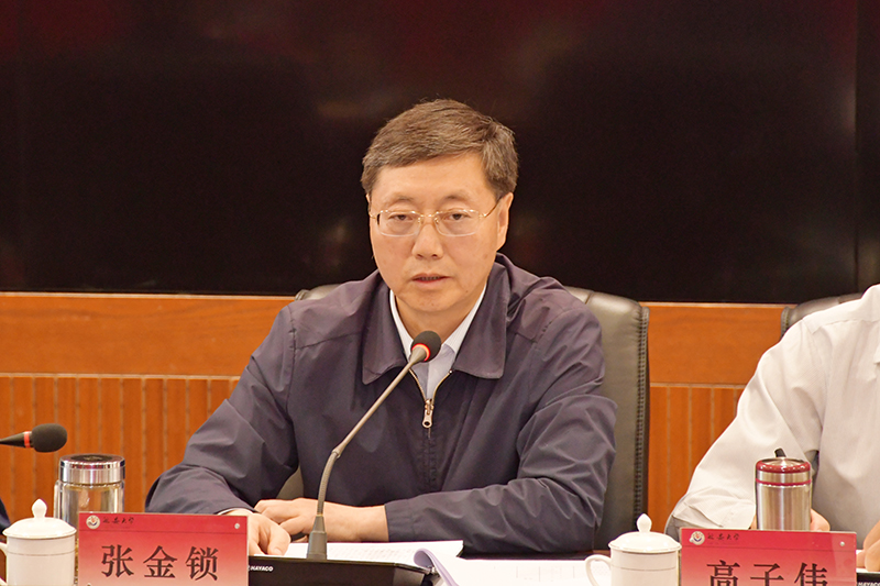张金锁在会上作了《坚持严的主基调不动摇,坚决守牢校园安全底线,为更有特色、更有水平大学建设提供坚强政治保障》的重要讲话。