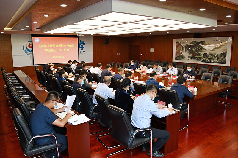 会上,校党委书记张金锁代表学校党委从履行专项整治工作主体责任情况、推进整治工作的具体举措、特色亮点工作及问题和困难、下一步整改工作计划等四个方面,向督导组汇报了巡视整改和专项整治工作阶段性进展情况。